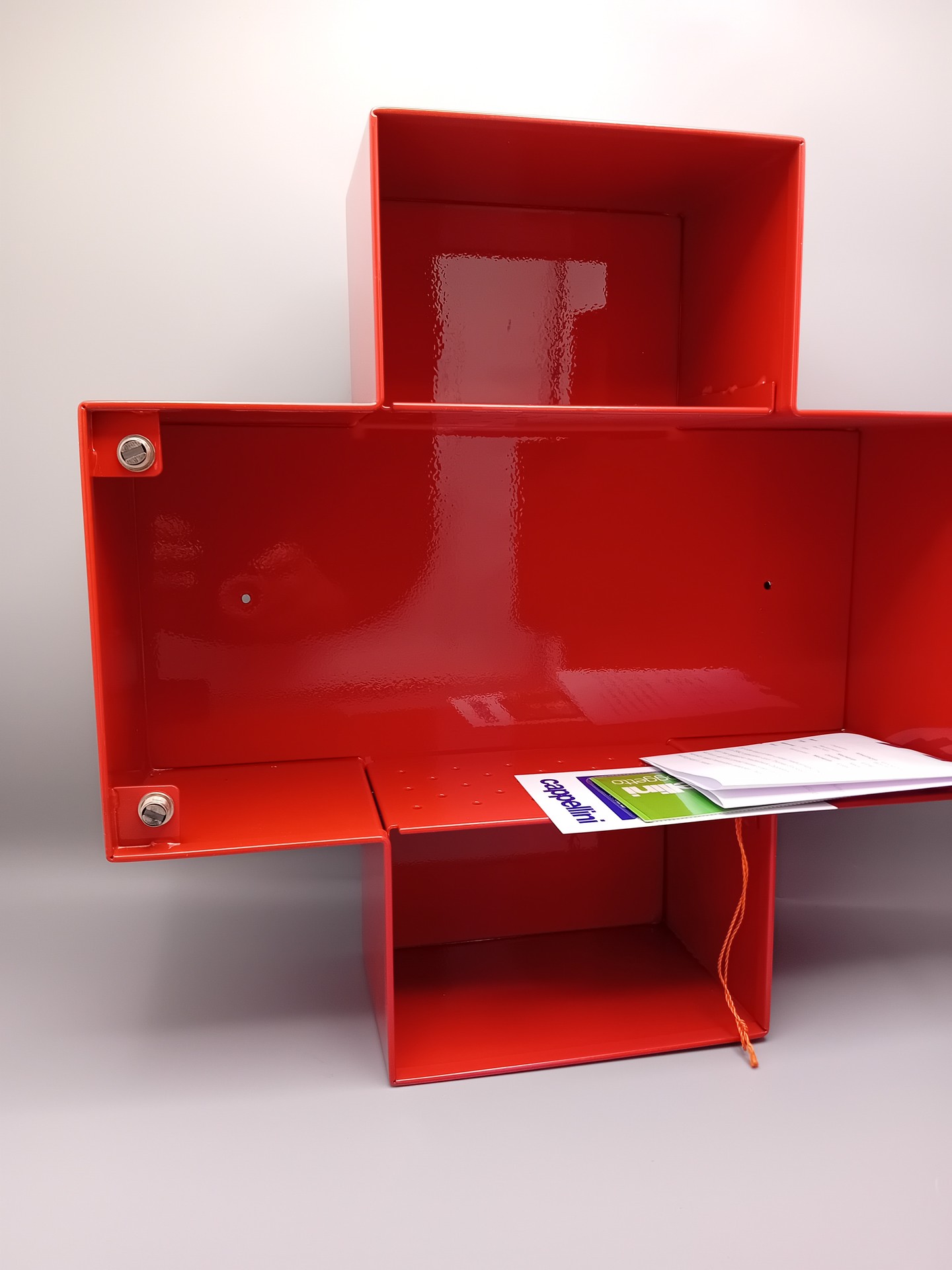 Dit rode kruis is een unieke medicijnkast. Het is in 1992 ontworpen door Thomas Ericksson voor het italiaanse meubelmerk Cappellini. Het kruis is rood gelakt metaal. Het is een de meest herkenbare symbolen. en een absolute blikvanger